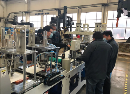 作為生產(chǎn)供貨單位,為了以最快速度擴大產(chǎn)能,八院鵬力科技集團黨支部組織成立“黨員突擊隊”,24小時無間歇輪班工作,帶頭加班加點投入專項任務(wù)研制生產(chǎn)。八院鵬力科技集團僅用11天就完成N95口罩機、平面口罩機和壓條機樣機研制,僅15天就實現(xiàn)了量產(chǎn)設(shè)備的連續(xù)供貨。科研團隊正確處理抓質(zhì)量、促進度的關(guān)系,按照軍工產(chǎn)品質(zhì)量要求,確保交付產(chǎn)品質(zhì)量過硬。