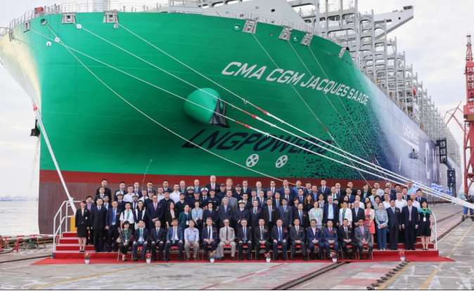 被譽為“明星”船型的這艘雙燃料動力集裝箱船,一直以來備受業(yè)界廣泛關(guān)注,她的成功交付是我國船舶工業(yè)高質(zhì)量發(fā)展取得的重要成果,彰顯了中國船舶集團(tuán)作為世界一流造船集團(tuán)雄厚的研發(fā)、設(shè)計和建造實力,標(biāo)志著中國船舶集團(tuán)在世界大型集裝箱船領(lǐng)域成功實現(xiàn)從跟隨到引領(lǐng),書寫了中國船舶工業(yè)新的榮耀。