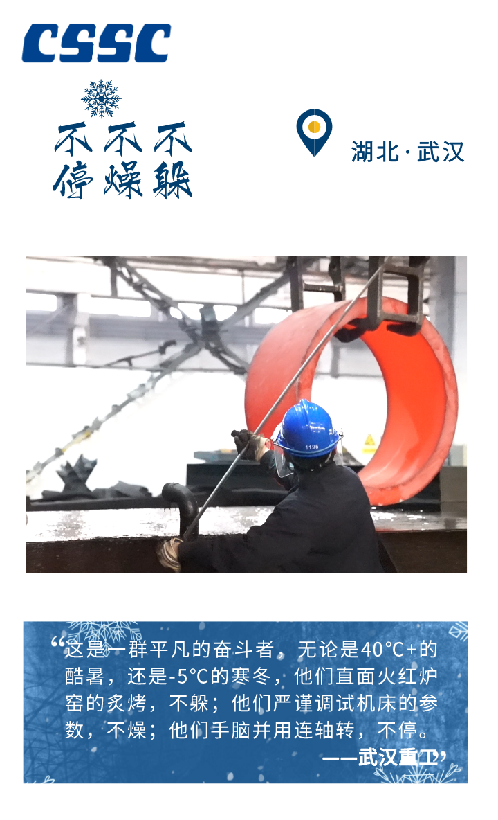 -5℃、-10℃、-20℃ …… 在這個(gè)不斷刷新寒冷指數(shù)的冬季 從未缺席中國(guó)船舶人勞作的身影 皎潔的白雪、火紅的爐膛 呼嘯的海風(fēng)、疾行的足音 奏響了冬季船舶人的 冰與火之歌