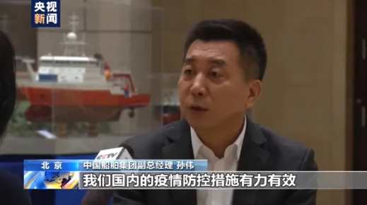 中國(guó)船舶集團(tuán)副總經(jīng)理 孫偉:其中重要的一條,就是我們國(guó)內(nèi)疫情防控措施有力有效,堅(jiān)定了船東對(duì)中國(guó)企業(yè)的信心,我們的研發(fā)人員主動(dòng)作為、創(chuàng)新工作,確保了在疫情下和客戶(hù)的溝通交流各個(gè)環(huán)節(jié)的暢通、高效。
