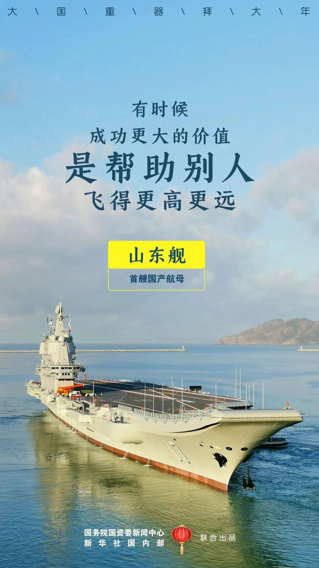 大年初一新年到! 中國(guó)船舶給您拜年啦! 知道您收到的祝福已很多 中國(guó)船舶的不一樣 送您兩個(gè)超級(jí)重磅 大國(guó)重器拜大年 山東艦 祝您牛氣沖天,一路遠(yuǎn)航!