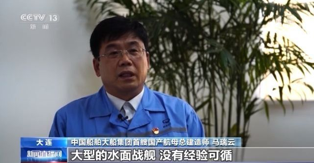 中國船舶大船集團(tuán)首艘國產(chǎn)航母總建造師馬瑞云:第一次生產(chǎn)這種超過300多米長的大型的水面戰(zhàn)艦,沒有經(jīng)驗可循。