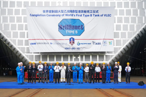 5月12日,中國船舶集團旗下江南造船舉行了世界首制99000立方米超大型液化乙烷運輸船 (VLEC) 首個B型液貨艙完工儀式,標志江南造船99000立方米VLEC建造實現(xiàn)關鍵技術突破,其自主研發(fā)的“BrilliancE?”貨物圍護系統(tǒng)實現(xiàn)工程化和節(jié)拍化生產。