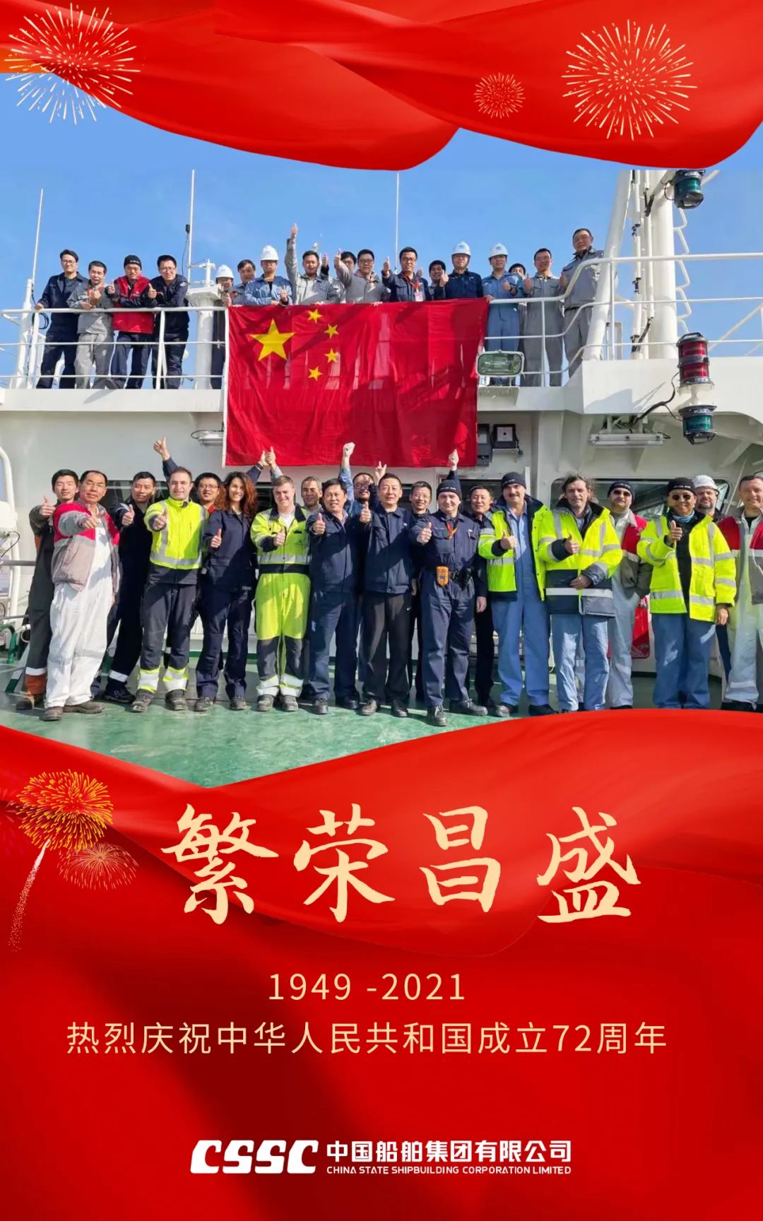 盛世中國(guó),喜迎華誕。在這個(gè)舉國(guó)歡慶的日子里,中國(guó)船舶滬東中華衷心祝愿?jìng)ゴ笞鎳?guó)繁榮昌盛,國(guó)泰民安!