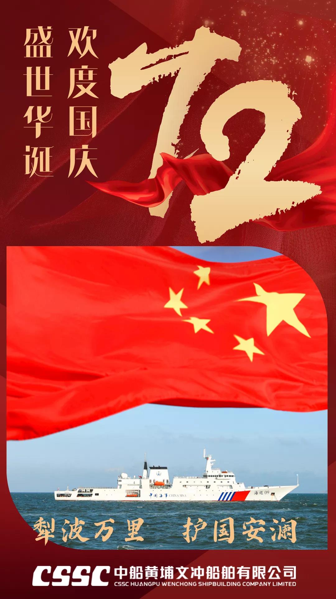 欣望江山千里秀,歡送祖國(guó)萬(wàn)年春,中國(guó)船舶七〇九所祝福新中國(guó)72歲生日快樂(lè),“中國(guó)號(hào)”巨輪劈波斬浪再創(chuàng)新輝煌!