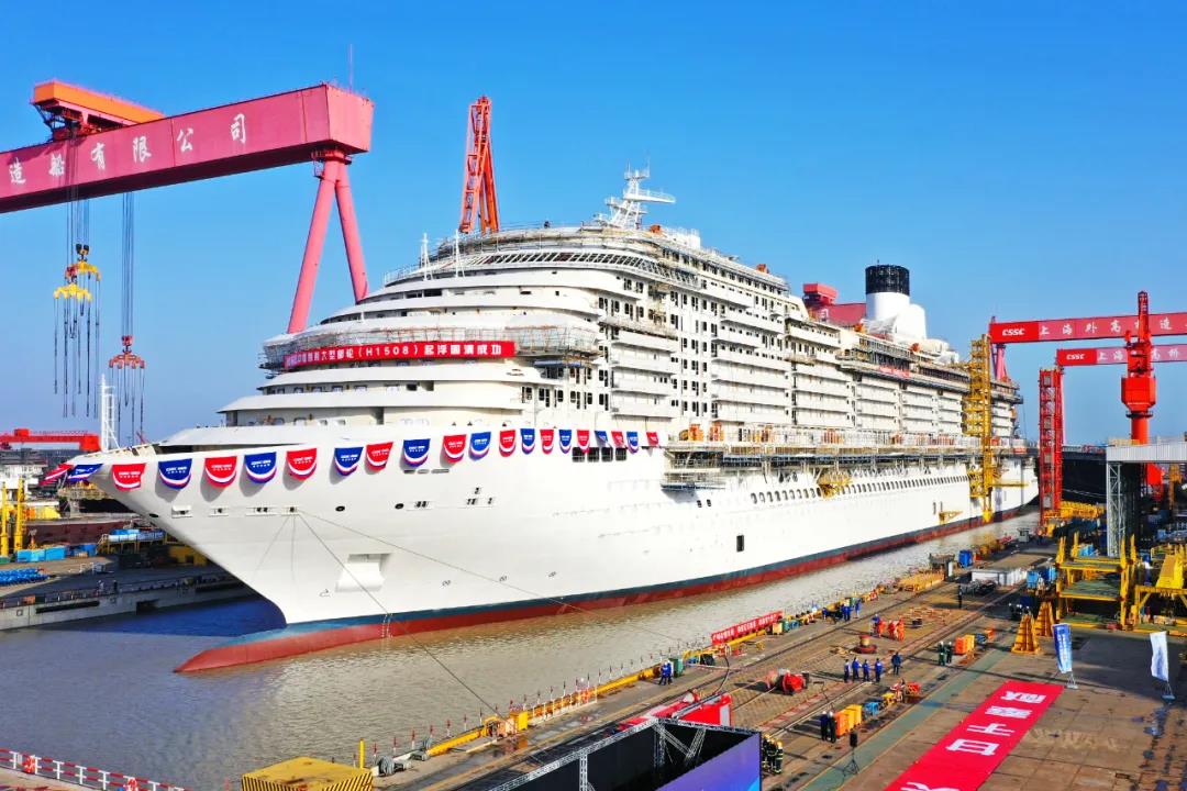中國首制郵輪塢內(nèi)起浮里程碑節(jié)點的實現(xiàn),是集團公司上上下下共同努力所取得的重大階段性成果,展現(xiàn)了中國船舶集團攻堅克難,全力以赴完成這一巨系統(tǒng)工程的力量、意志和實力。