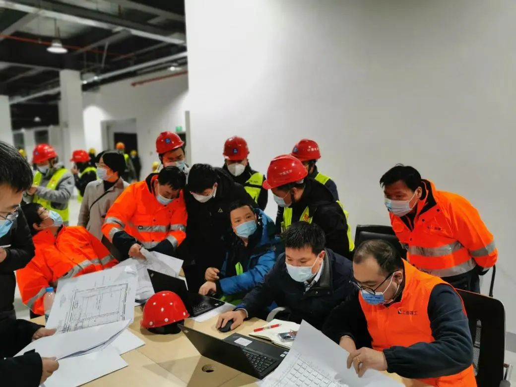 中船九院公司領(lǐng)導(dǎo)帶領(lǐng)項(xiàng)目團(tuán)隊(duì)連續(xù)多日通宵在現(xiàn)場工作,及時(shí)協(xié)調(diào)工地各種情況,與集團(tuán)公司相關(guān)部門并肩作戰(zhàn)、及時(shí)溝通,提高工作效能;同時(shí)堅(jiān)持實(shí)時(shí)優(yōu)化設(shè)計(jì),協(xié)調(diào)工程建設(shè)。項(xiàng)目設(shè)計(jì)負(fù)責(zé)人、中船九院副總建筑師王川第一時(shí)間組織團(tuán)隊(duì)明確職責(zé)分工,確定了現(xiàn)場設(shè)計(jì)、后方設(shè)計(jì)、現(xiàn)場管理、外場支持等多專業(yè)協(xié)同配合機(jī)制,確保多條線同時(shí)作戰(zhàn)、運(yùn)作高效。總工程師黃延驅(qū)車前往長興島專送工程保障設(shè)備,長興島實(shí)行“只進(jìn)不出”,他就直接加入現(xiàn)場設(shè)計(jì)團(tuán)隊(duì),10天沒有下島。設(shè)計(jì)團(tuán)隊(duì)中三位女設(shè)計(jì)師沈清清、胡雁、沈峻,更是巾幗不讓須眉,創(chuàng)造性地解決了暖風(fēng)系統(tǒng)設(shè)計(jì)等一系列難題,堅(jiān)守一線直到項(xiàng)目最終交付。項(xiàng)目管理團(tuán)隊(duì)的戴鳳波、徐詠春、欒海林、王后軍、屈杰、倪冬輝等人把現(xiàn)場當(dāng)作家,3天只在賓館住了3個(gè)小時(shí),其余時(shí)間都在車上、辦公桌上度過。項(xiàng)目部顧建章、汪凱則協(xié)調(diào)運(yùn)輸通行資源,解決了建設(shè)期間工程人員的基本飲食問題。與此同時(shí),還有更多的人在后方作戰(zhàn)斗支撐,中船九院建筑一院院長曾志堅(jiān)迅速組織本部設(shè)計(jì)團(tuán)隊(duì),緊急將居家辦公的相關(guān)專業(yè)骨干召回,組成了包括張瓊、瞿駸、郭鳳群、李嘯、蔣斌等18名骨干在內(nèi),建筑、結(jié)構(gòu)、水、電、風(fēng)、經(jīng)濟(jì)各專業(yè)齊全的團(tuán)隊(duì)。之后因項(xiàng)目需要,胡雁、瞿革、瞿駸上島加入現(xiàn)場設(shè)計(jì)團(tuán)隊(duì)。