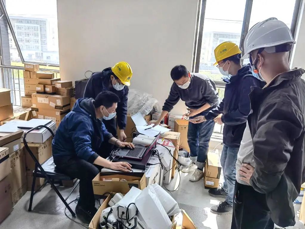 工程弱電安防系統(tǒng)是一塊“硬骨頭”。七一六所自3月22日起就連夜組織進(jìn)行工程的弱電安防設(shè)計(jì),23日開工建設(shè),26日完成一號工程整體交付,30日完成三號工程弱電安防主體施工任務(wù),連續(xù)幾個(gè)通宵;搶進(jìn)度、抓質(zhì)量、保安全,反反復(fù)復(fù)地設(shè)計(jì)改圖、不停地轉(zhuǎn)換工作界面、現(xiàn)場驗(yàn)收過程出現(xiàn)的醫(yī)護(hù)新需求、施工現(xiàn)場造成的返工維修……現(xiàn)場團(tuán)隊(duì)分成多個(gè)工作組,細(xì)化職責(zé)分工、積極統(tǒng)籌調(diào)度,他們咬牙堅(jiān)持每天只睡一兩個(gè)小時(shí),最終高質(zhì)量完成了任務(wù)。
