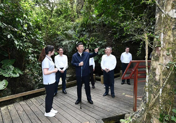 11日下午,習(xí)近平總書(shū)記到海南島中南部的五指山市考察調(diào)研。海南熱帶雨林國(guó)家公園是我國(guó)首批5個(gè)國(guó)家公園之一。習(xí)近平總書(shū)記深入五指山片區(qū),沿木棧道步行察看公園生態(tài)環(huán)境,不時(shí)停下腳步,詢問(wèn)樹(shù)木生長(zhǎng)、水源涵養(yǎng)、動(dòng)植物資源保護(hù)等情況。