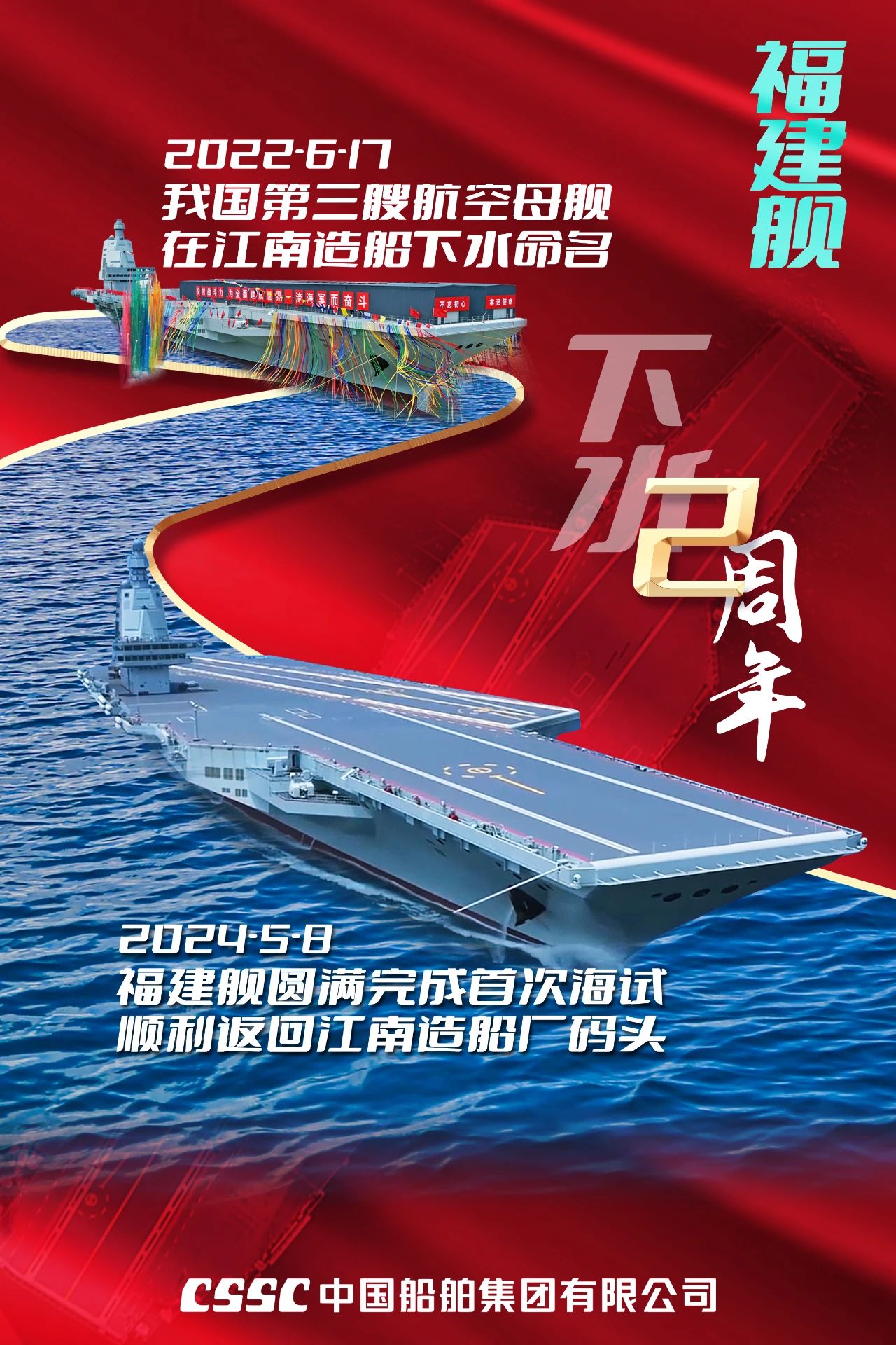 兩年前的今天,我國完全自主設(shè)計(jì)建造的首艘彈射型航空母艦——福建艦,在中國船舶集團(tuán)有限公司江南造船廠下水。