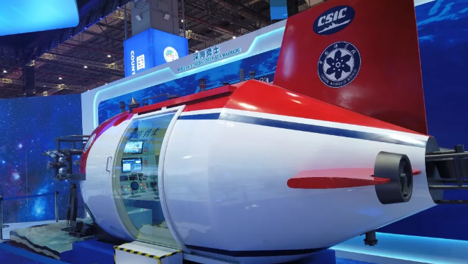 在進博會期間,“深海勇士”號4500米載人作業(yè)潛水器模型裝置的一體式設備陳列在中國館,吸引參觀者“深入”潛水器內(nèi)部一探究竟。