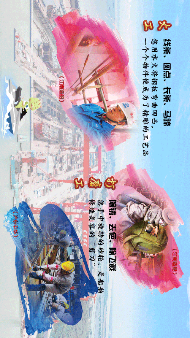 百尺竿頭立不難 一勤天下無難事 作為世界最大造船集團 中國船舶有無數(shù)兢兢業(yè)業(yè)的造船人 他們牢記使命擔當 忠誠履職盡責 用自己的雙手 書寫著中國造船人的光榮與夢想 每個崗位上的盡心盡責 都值得被銘記 今天 我們特別選取造船產業(yè)鏈上的27種崗位 用一張張?zhí)貙? 向他們致以節(jié)日的敬意