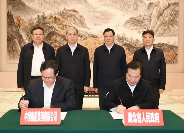 會(huì)見(jiàn)后,楊金成與黃楚平分別代表中國(guó)船舶集團(tuán)和湖北省政府簽署了戰(zhàn)略合作協(xié)議。