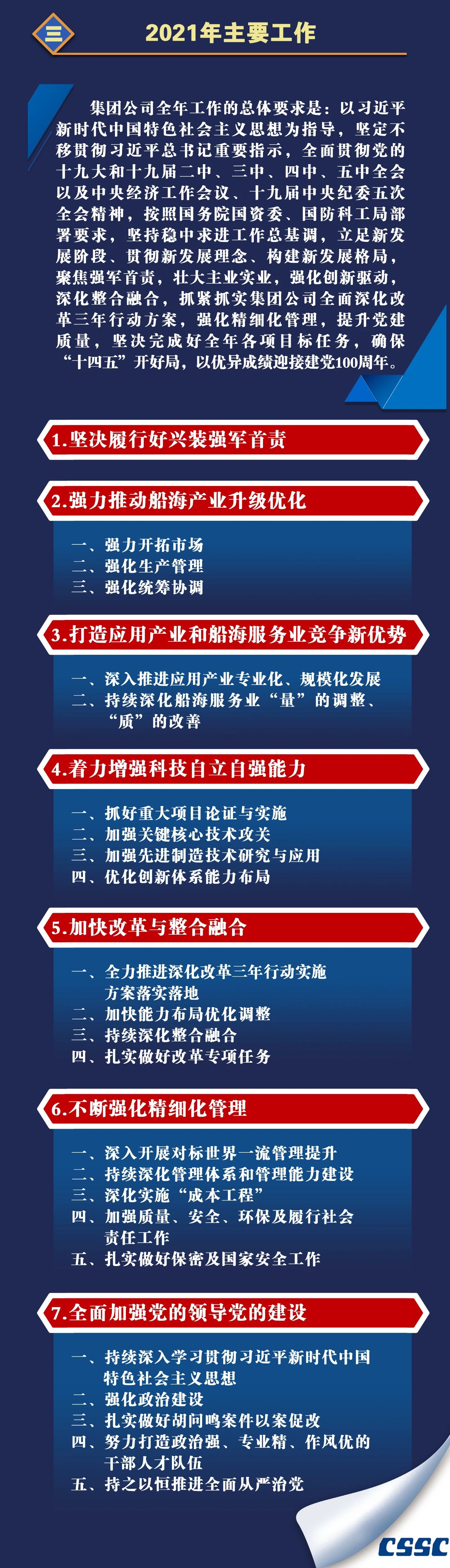 1月27日,在中國船舶集團有限公司2021年度工作會議上,中國船舶集團黨組書記、董事長雷凡培作了題為《貫徹新發(fā)展理念  強化精細(xì)化管理  為加快建設(shè)世界一流船舶集團不懈奮斗》的工作報告。
