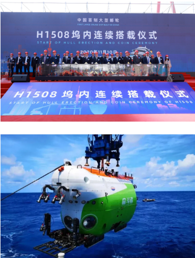 2020年,中國(guó)船舶集團(tuán)在科技創(chuàng)新方面取得重要突破,核心競(jìng)爭(zhēng)力持續(xù)提升。“奮斗者”號(hào)載人潛水器在馬里亞納海溝10909米處成功坐底,實(shí)現(xiàn)了中國(guó)載人深潛首次萬米突破;船用低速機(jī)工程原理樣機(jī)、工程樣機(jī)、關(guān)重件樣件試驗(yàn)驗(yàn)證取得新成果;與廣東省簽訂船舶LNG動(dòng)力改造項(xiàng)目合作框架協(xié)議。在持續(xù)推進(jìn)自主可控工程與關(guān)鍵核心技術(shù)攻關(guān)方面,中國(guó)船舶集團(tuán)承擔(dān)多項(xiàng)攻關(guān)任務(wù)實(shí)現(xiàn)關(guān)鍵核心技術(shù)突破。在軍民品科研開發(fā)、先進(jìn)制造技術(shù)研發(fā)應(yīng)用、科技創(chuàng)新基礎(chǔ)夯實(shí)方面,中國(guó)船舶集團(tuán)也開展了大量工作,并取得顯著成效。