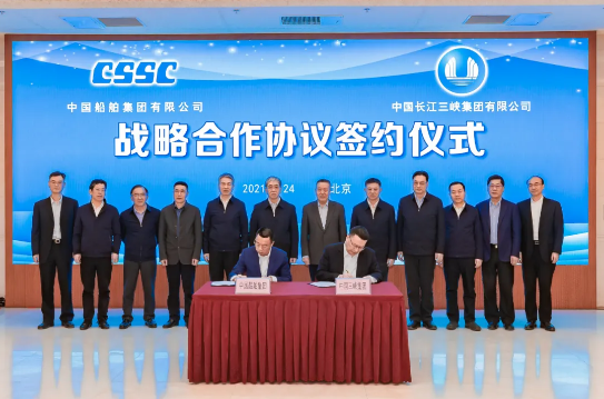 2月24日,中國船舶集團有限公司與中國長江三峽集團有限公司在京簽署戰(zhàn)略合作框架協(xié)議。中國船舶集團黨組書記、董事長雷凡培,三峽集團黨組書記、董事長雷鳴山出席簽約儀式。中國船舶集團黨組成員、副總經(jīng)理盛紀綱,三峽集團黨組成員、副總經(jīng)理王良友分別代表雙方在協(xié)議上簽字。