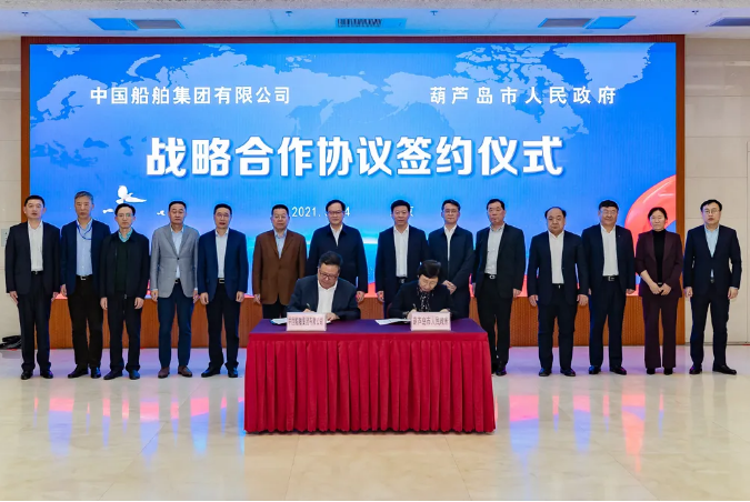 3月24日,中國(guó)船舶集團(tuán)有限公司與葫蘆島市人民政府在京簽署戰(zhàn)略合作協(xié)議。中國(guó)船舶集團(tuán)黨組副書(shū)記、總經(jīng)理?xiàng)罱鸪桑J島市委副書(shū)記、市長(zhǎng)楊軍生,市委常委、副市長(zhǎng)張明謙出席簽約儀式。中國(guó)船舶集團(tuán)黨組成員、副總經(jīng)理錢(qián)建平,葫蘆島市副市長(zhǎng)黃曉霞分別代表雙方在協(xié)議上簽字。簽約前,雙方圍繞共同服務(wù)國(guó)家戰(zhàn)略,就進(jìn)一步加強(qiáng)交流合作、實(shí)現(xiàn)共同發(fā)展進(jìn)行了深入交流。