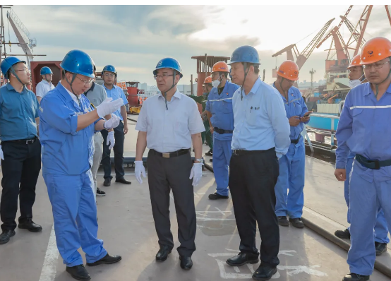 7月21日,工信部黨組成員、總工程師田玉龍到中國船舶集團(tuán)有限公司大連地區(qū)成員單位調(diào)研指導(dǎo)工作。田玉龍一行先后到中國船舶集團(tuán)第七六〇研究所、大連船舶重工集團(tuán)有限公司實地考察了有關(guān)試驗場和在建船舶,聽取了兩家單位整體發(fā)展情況特別是科技創(chuàng)新方面的工作匯報,并對下一步工作提出要求。