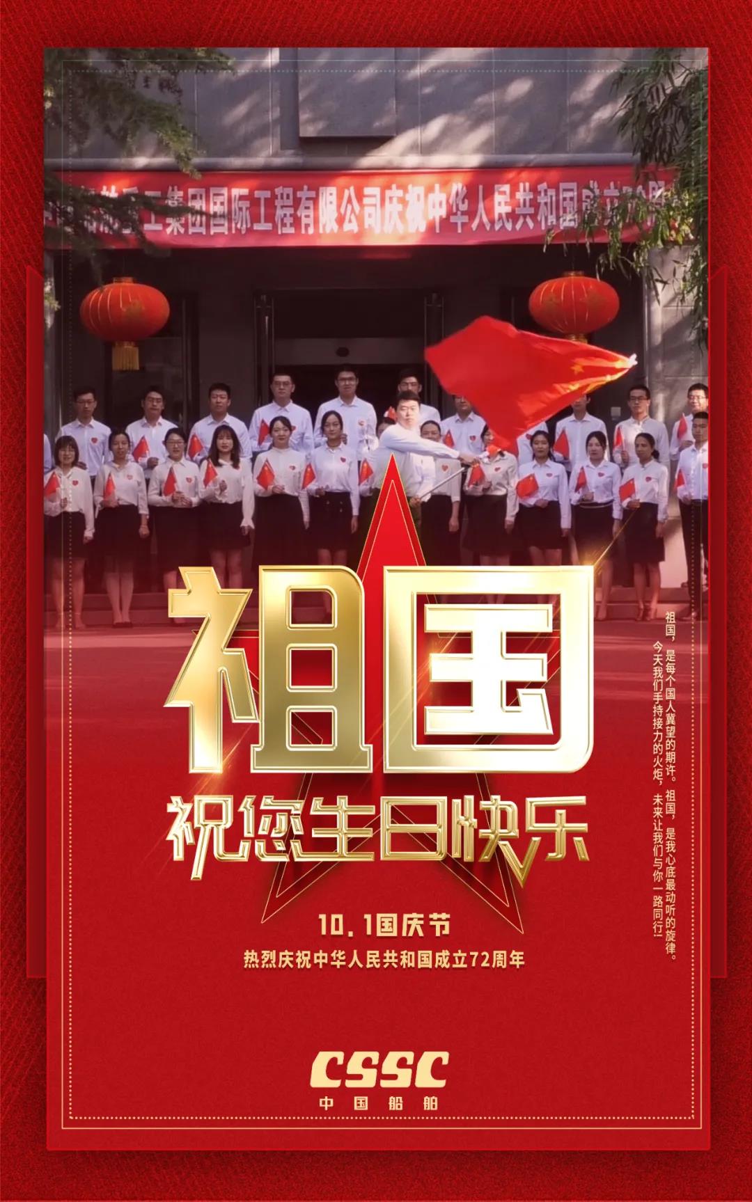 祖國,是每個(gè)國人冀望的期許!祖國,是船舶人心底最動(dòng)聽的旋律!72年來,新中國經(jīng)歷了風(fēng)風(fēng)雨雨;72年過去,成就了盛世風(fēng)華,中國船舶六〇二院全體員工祝新中國生日快樂!