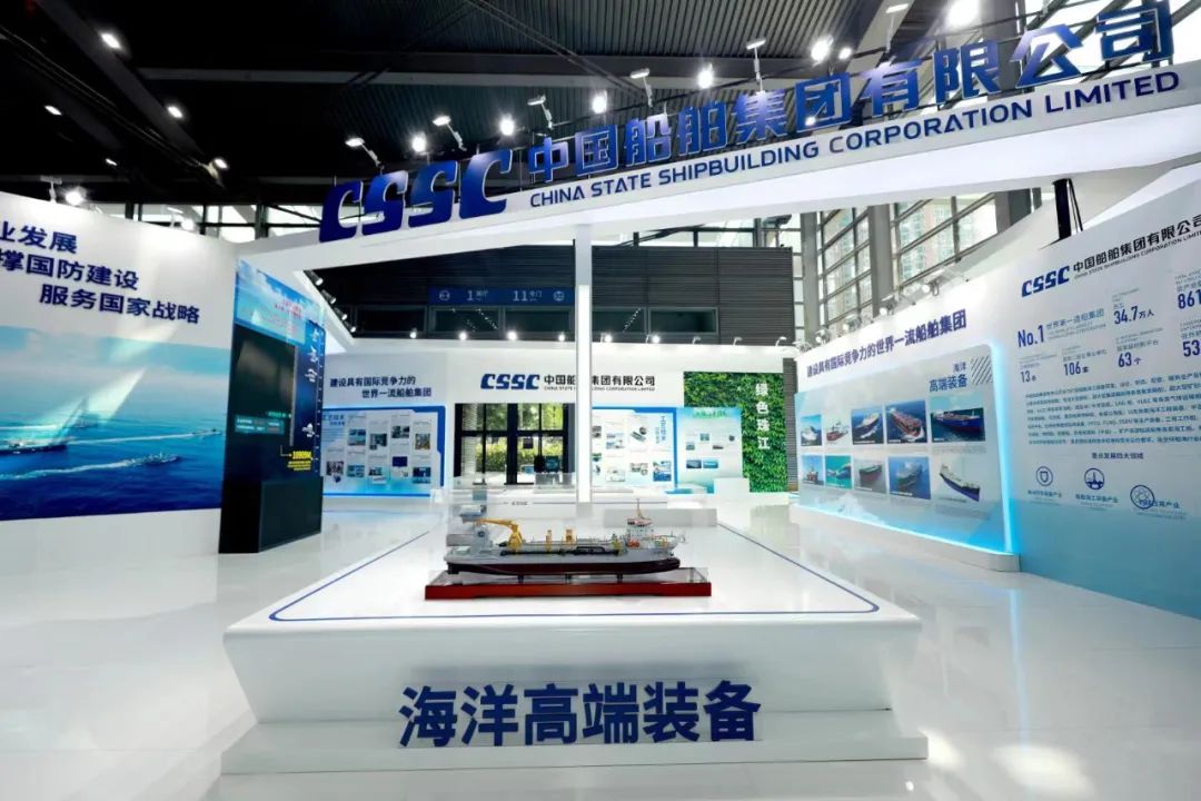 在大會(huì)的展示環(huán)節(jié),中國(guó)船舶集團(tuán)展臺(tái)通過集團(tuán)總體、海洋防務(wù)、海洋高端裝備、工藝技術(shù)創(chuàng)新發(fā)展、海洋經(jīng)濟(jì)新業(yè)態(tài)、工匠風(fēng)采、“奮斗者”號(hào)、綠色珠江八個(gè)板塊,分別展出了7500立方米液態(tài)二氧化碳運(yùn)輸船、半潛式全自動(dòng)現(xiàn)代化三文魚深海養(yǎng)殖裝備、合金鋼中間軸在大型油船上的首次應(yīng)用等55項(xiàng)創(chuàng)新成果,并展示了28位工匠代表的風(fēng)采。集團(tuán)公司展臺(tái)采用開放、通透的布局,突出中國(guó)船舶品牌元素,集中展示集團(tuán)公司立足新發(fā)展階段,貫徹新發(fā)展理念,在戰(zhàn)略重組后以高質(zhì)量發(fā)展為主題,壯大主業(yè)實(shí)業(yè)、加快推動(dòng)船海產(chǎn)業(yè)向中高端轉(zhuǎn)型發(fā)展,以及大力弘揚(yáng)軍工精神和勞模精神、勞動(dòng)精神、工匠精神,強(qiáng)化自主創(chuàng)新的整體實(shí)力和在推動(dòng)低碳環(huán)保、區(qū)域經(jīng)濟(jì)發(fā)展等方面的最新成果。集團(tuán)公司還通過本屆大會(huì)“互聯(lián)網(wǎng)+展會(huì)”模式開設(shè)的“云展會(huì)”,讓參觀者線上云游中國(guó)船舶展臺(tái),擴(kuò)大企業(yè)品牌影響力。