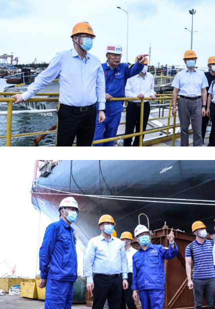 9月22日,中國船舶集團(tuán)有限公司黨組副書記、總經(jīng)理?xiàng)罱鸪傻郊瘓F(tuán)公司旗下江南造船、滬東中華調(diào)研指導(dǎo)工作。楊金成聽取了江南造船、滬東中華近期安全生產(chǎn)、疫情防控、保密保衛(wèi)、信訪維穩(wěn)等工作及生產(chǎn)經(jīng)營情況的匯報(bào),并登上兩家企業(yè)船塢碼頭查看了重點(diǎn)在建船舶進(jìn)展情況。