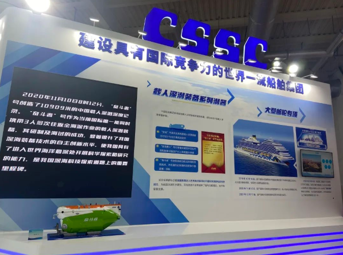 在重大科技專項(xiàng)工程展區(qū),中國船舶集團(tuán)集中展示了在深海科學(xué)研究和海洋資源開發(fā)領(lǐng)域深化實(shí)施的“蛟龍”號、“深海勇士”號、“奮斗者”號三型載人深潛裝備等一批重大科技專項(xiàng)工程,以及取得的突破性、標(biāo)志性的成果。其中,展會(huì)現(xiàn)場展示的“奮斗者”號創(chuàng)造了10909米的中國載人深潛深度紀(jì)錄。