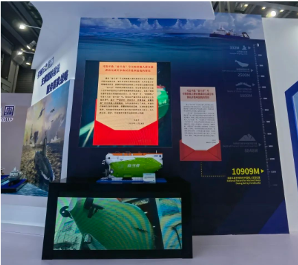 吸引眼球的還有“奮斗者”號載人潛水器,以及雪龍-2號、遠(yuǎn)望7號等深海極地重大裝備、航天測量船家族。在展臺處,不僅播放了“奮斗者”號萬米深潛坐底激動人心的畫面,還展示了習(xí)近平總書記的賀信,激勵(lì)中國船舶人踔厲奮發(fā)、勇毅前行。