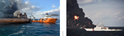 “深潛”號與“海巡01”船在“桑吉”號救援現(xiàn)場