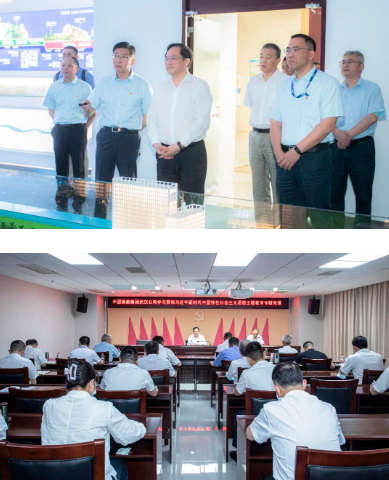 在七一二所,楊金成前往所展廳,聽取了關(guān)于所產(chǎn)業(yè)發(fā)展情況和未來規(guī)劃的匯報,并前往相關(guān)科研生產(chǎn)車間詳細了解情況;在武漢公司,楊金成深入了解公司改革發(fā)展與主題教育開展情況,并講授了題為《學(xué)習(xí)貫徹習(xí)近平新時代中國特色社會主義思想 加快建設(shè)世界一流船舶集團》的專題黨課。