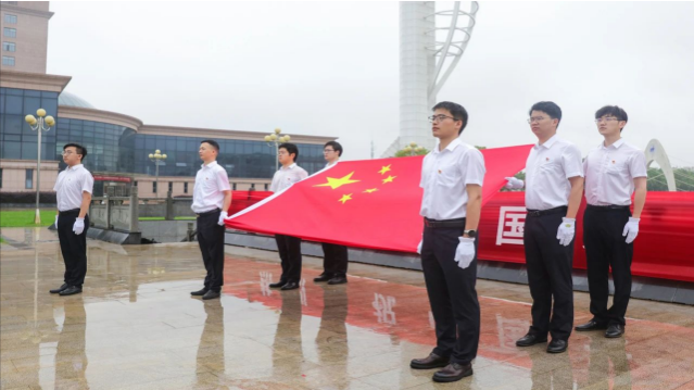 全體干部職工精神煥發(fā),以崇高的敬意,向國(guó)旗、向偉大的祖國(guó)致敬。