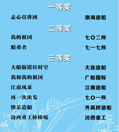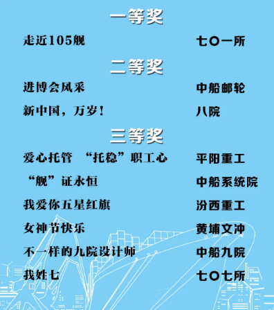 由中國船舶集團黨群工作部指導(dǎo),中國船舶集團新聞宣傳中心/中國船舶報社承辦的中國船舶集團第二屆短視頻大賽圓滿落幕。經(jīng)過前期篩選,網(wǎng)絡(luò)投票,并特邀國務(wù)院國資委新聞中心、國防科工局新聞宣傳中心、中央電視臺、微博政務(wù)、中國船舶集團黨群工作部專家評審,大賽最終評出一等獎5部,二等獎10部,三等獎23部,同時評出優(yōu)秀組織獎單位6家。名單如下,快來圍觀!