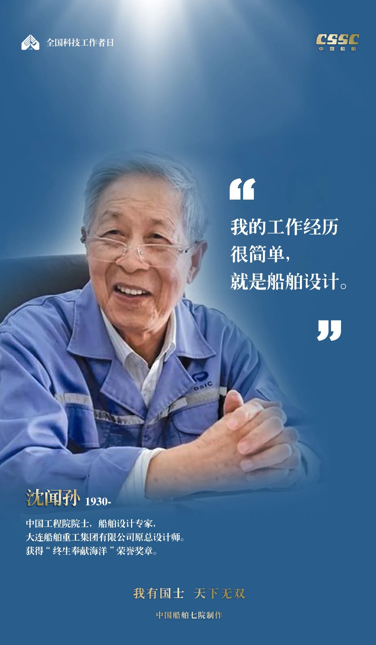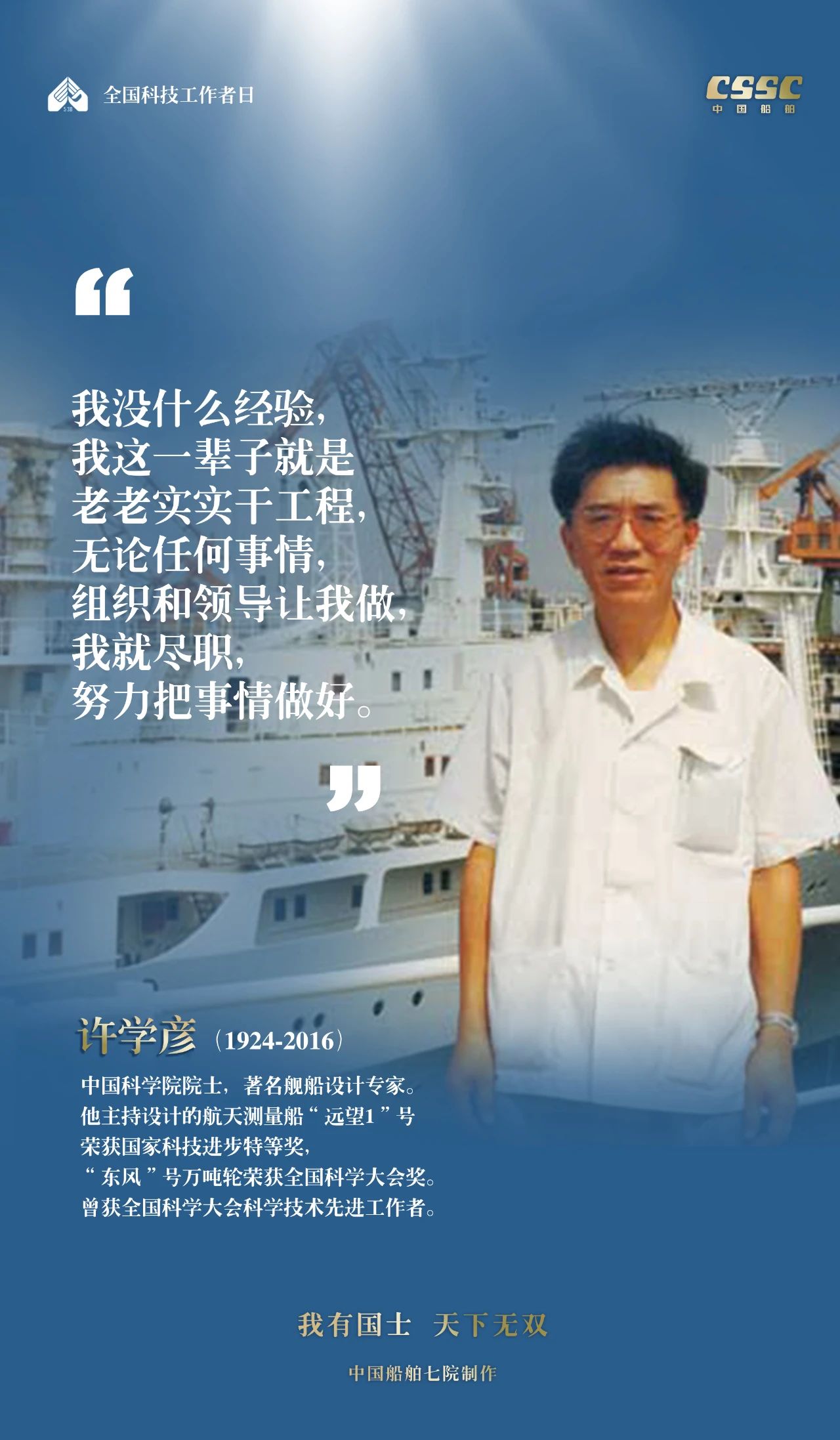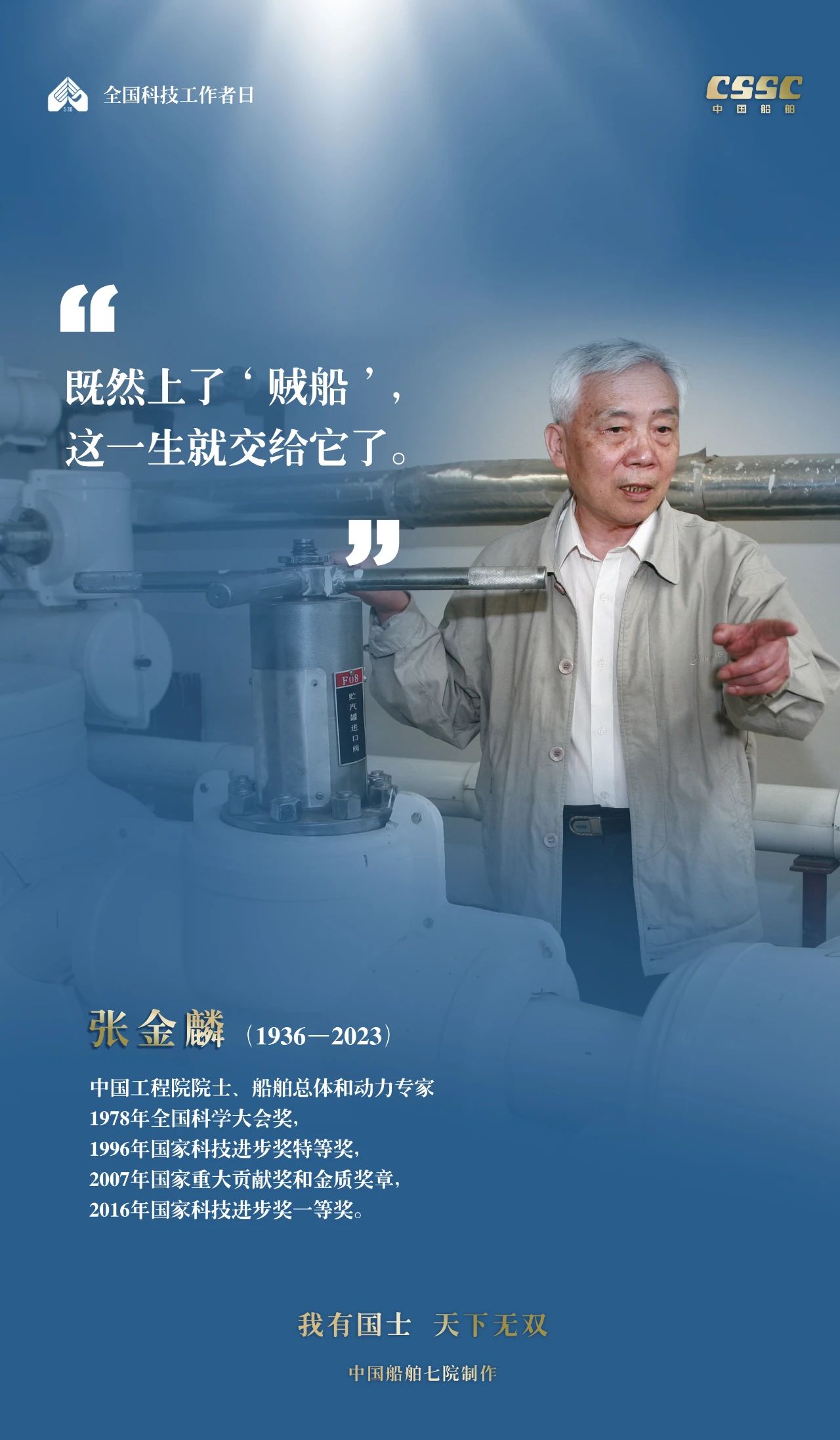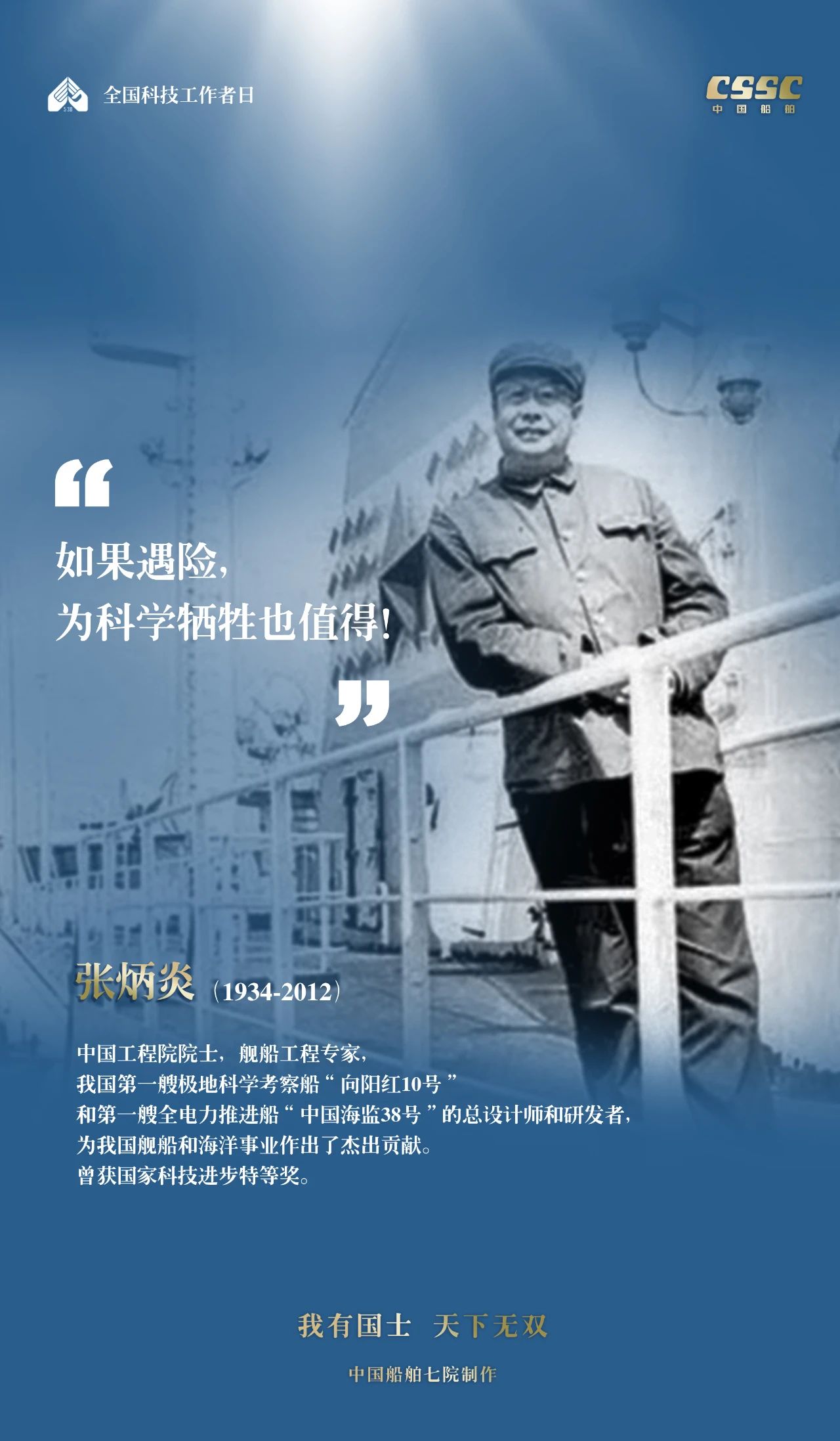 2024年5月30日,是第八個(gè)“全國(guó)科技工作者日”,一代代中國(guó)船舶人胸懷國(guó)之大者,無(wú)怨無(wú)悔勇攀科技高峰。他們的事跡也許無(wú)人知曉,他們的智慧卻是科學(xué)火種,他們用精神點(diǎn)亮希望之光,他們用勇氣探尋未來(lái)之路,他們有個(gè)共同的名字中國(guó)船舶科技工作者。