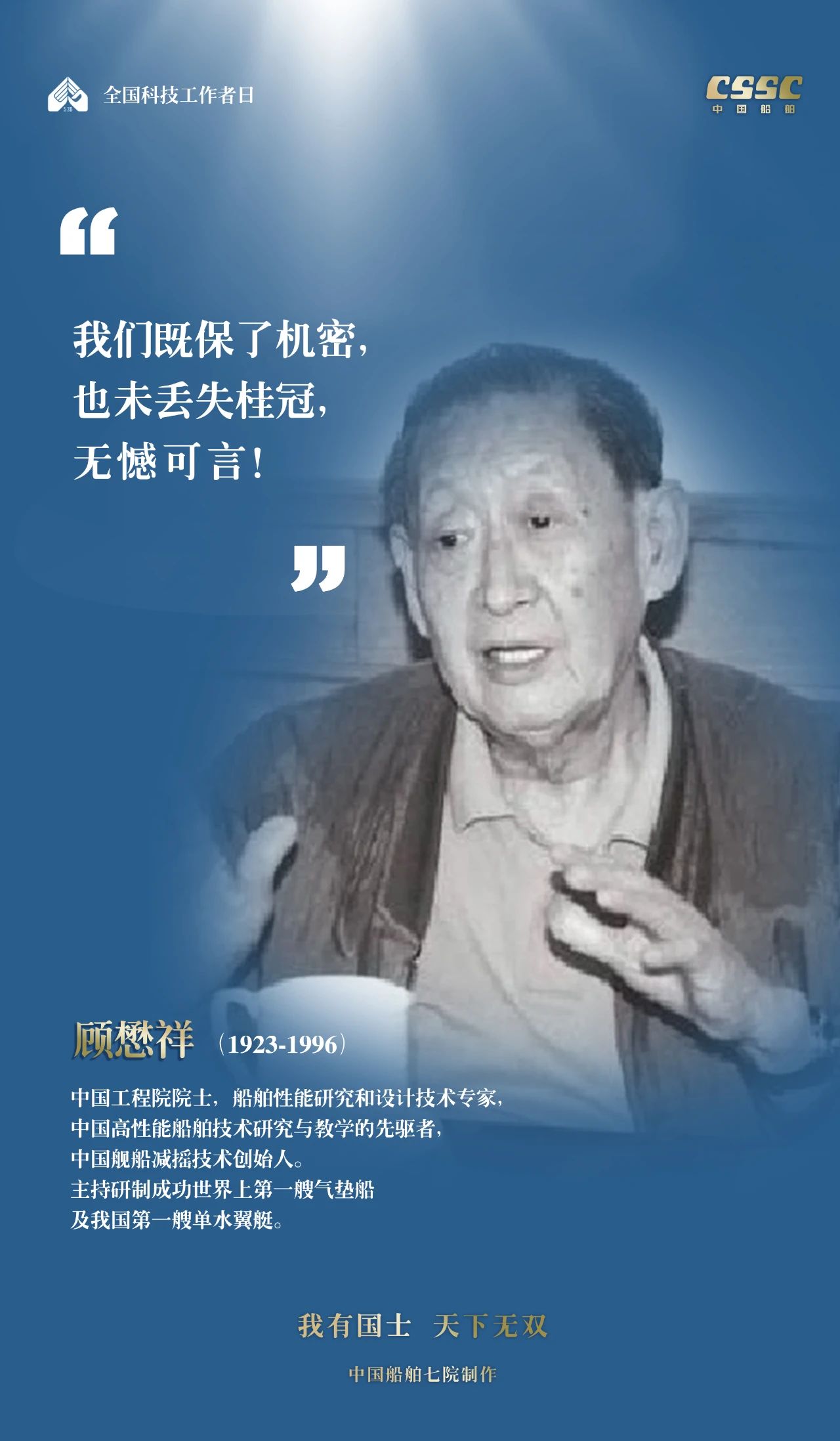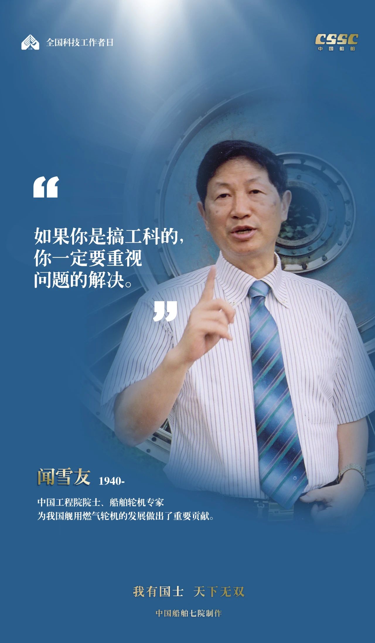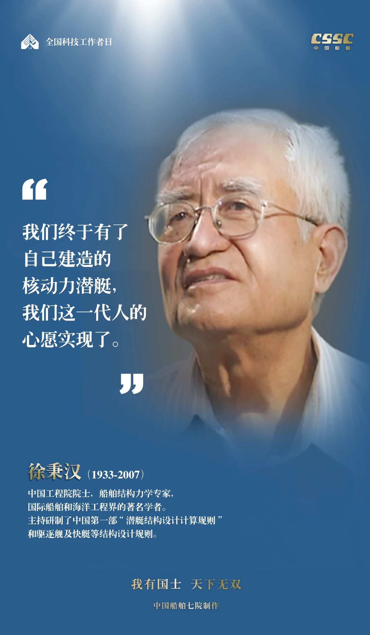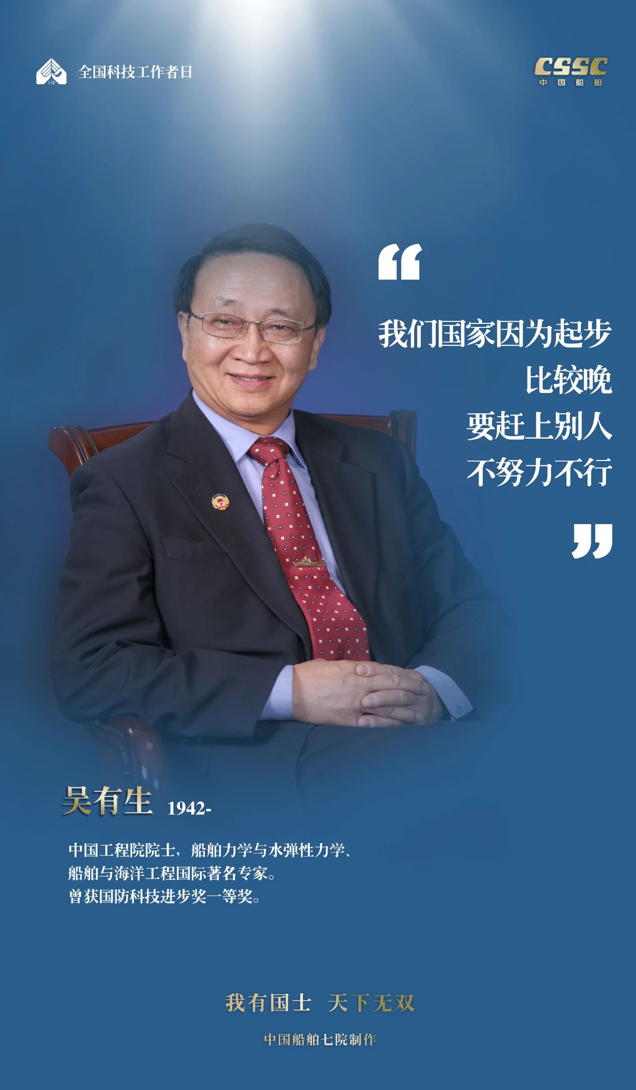 2024年5月30日,是第八個(gè)“全國(guó)科技工作者日”,一代代中國(guó)船舶人胸懷國(guó)之大者,無(wú)怨無(wú)悔勇攀科技高峰。他們的事跡也許無(wú)人知曉,他們的智慧卻是科學(xué)火種,他們用精神點(diǎn)亮希望之光,他們用勇氣探尋未來(lái)之路,他們有個(gè)共同的名字中國(guó)船舶科技工作者。