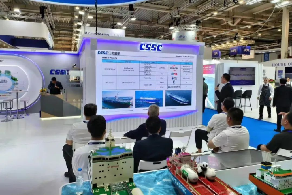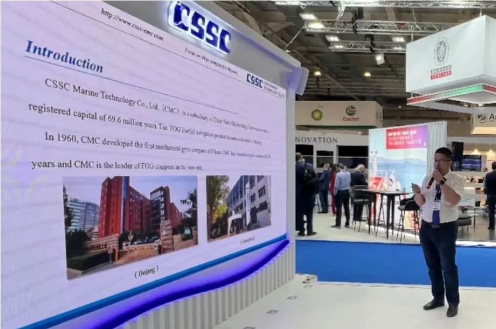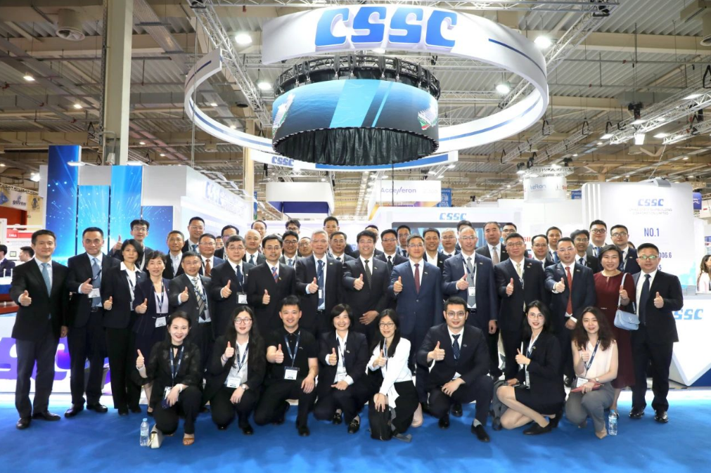 此次展會(huì),中國船舶集團(tuán)攜旗下19家成員單位參展,有關(guān)成員單位負(fù)責(zé)人率隊(duì)赴展會(huì)開展重點(diǎn)船海項(xiàng)目經(jīng)營洽談并拜訪當(dāng)?shù)睾椭苓厙铱蛻簟<瘓F(tuán)公司以“共贏未來”為參展主題,設(shè)置集團(tuán)總體區(qū)、綠色航運(yùn)解決方案區(qū)、低碳環(huán)保配套設(shè)備區(qū)共3個(gè)展示區(qū)域,重點(diǎn)展示了135500總噸大型郵輪、175000方LNG運(yùn)輸船、24000箱超大型集裝箱船、210000噸氨燃料散貨船、LNG雙燃料VLCC等一系列高技術(shù)、高附加值明星產(chǎn)品,以及CPGC-WinGD 10X92DF-M甲醇雙燃料發(fā)動(dòng)機(jī)、船用碳捕捉系統(tǒng)等全球船東高度關(guān)注的綠色低碳配套設(shè)備。同時(shí),通過展臺(tái)上醒目的品牌標(biāo)識(shí)、層級化的品牌體系圖、富有感染力的品牌推介視頻,首次面向全球客戶,立體化展示“中國船舶”品牌及下屬企業(yè)品牌和產(chǎn)品品牌體系,進(jìn)一步強(qiáng)化了集團(tuán)公司品牌形象。