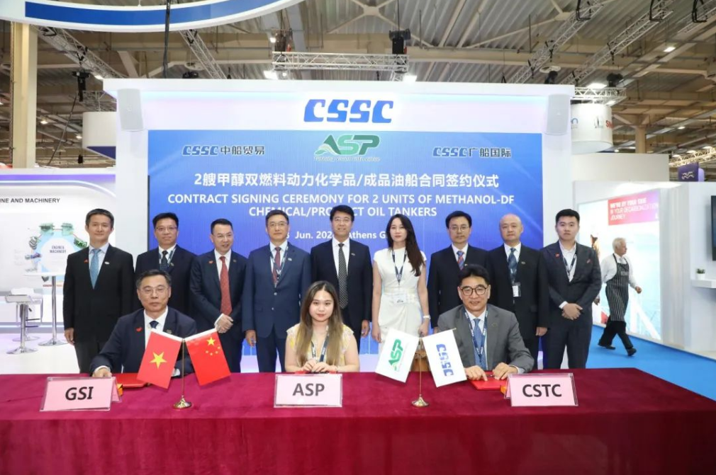 中船貿(mào)易、廣船國際與ASP公司2艘5萬噸MR甲醇雙燃料油輪項(xiàng)目簽約儀式