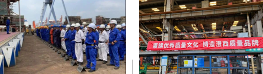 中船澄西組織各部門、車間舉行質(zhì)量誓師大會、質(zhì)量承諾簽名等活動,進(jìn)一步強化全員“質(zhì)量至上”意識,將質(zhì)量責(zé)任落在筆下、放到心中。質(zhì)量部牽頭開展工程承包商質(zhì)量管理體系運行“回頭看”專項檢查活動,通過“把脈體檢”,促進(jìn)施工“主力軍”不斷規(guī)范質(zhì)量管理工作,以管理能力提升促進(jìn)質(zhì)量工作提高。
