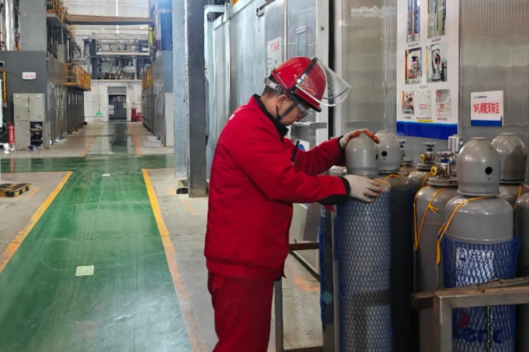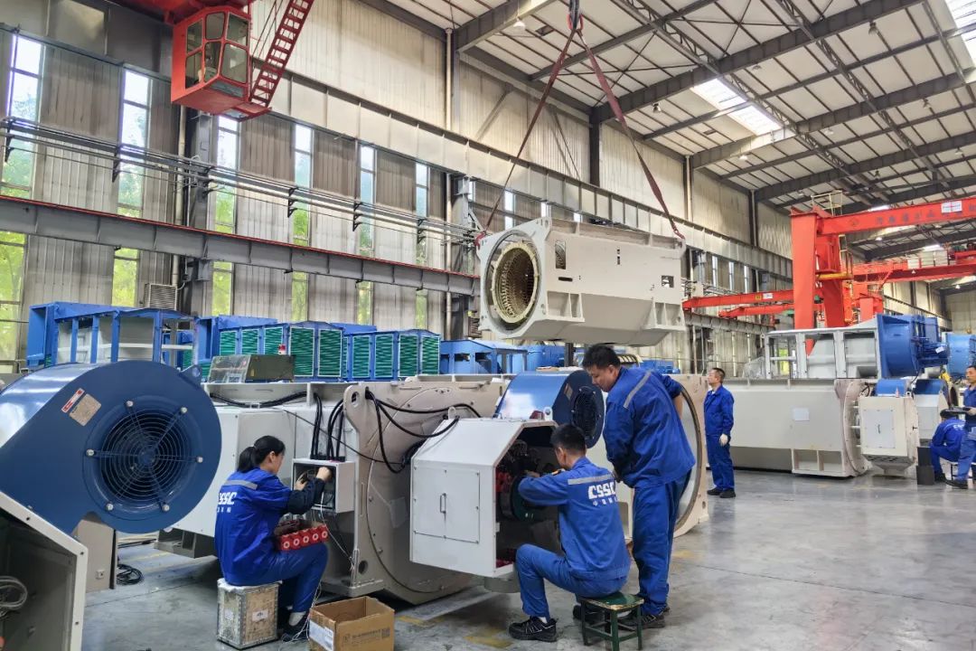 施工現(xiàn)場焊花飛舞、壓機轟鳴