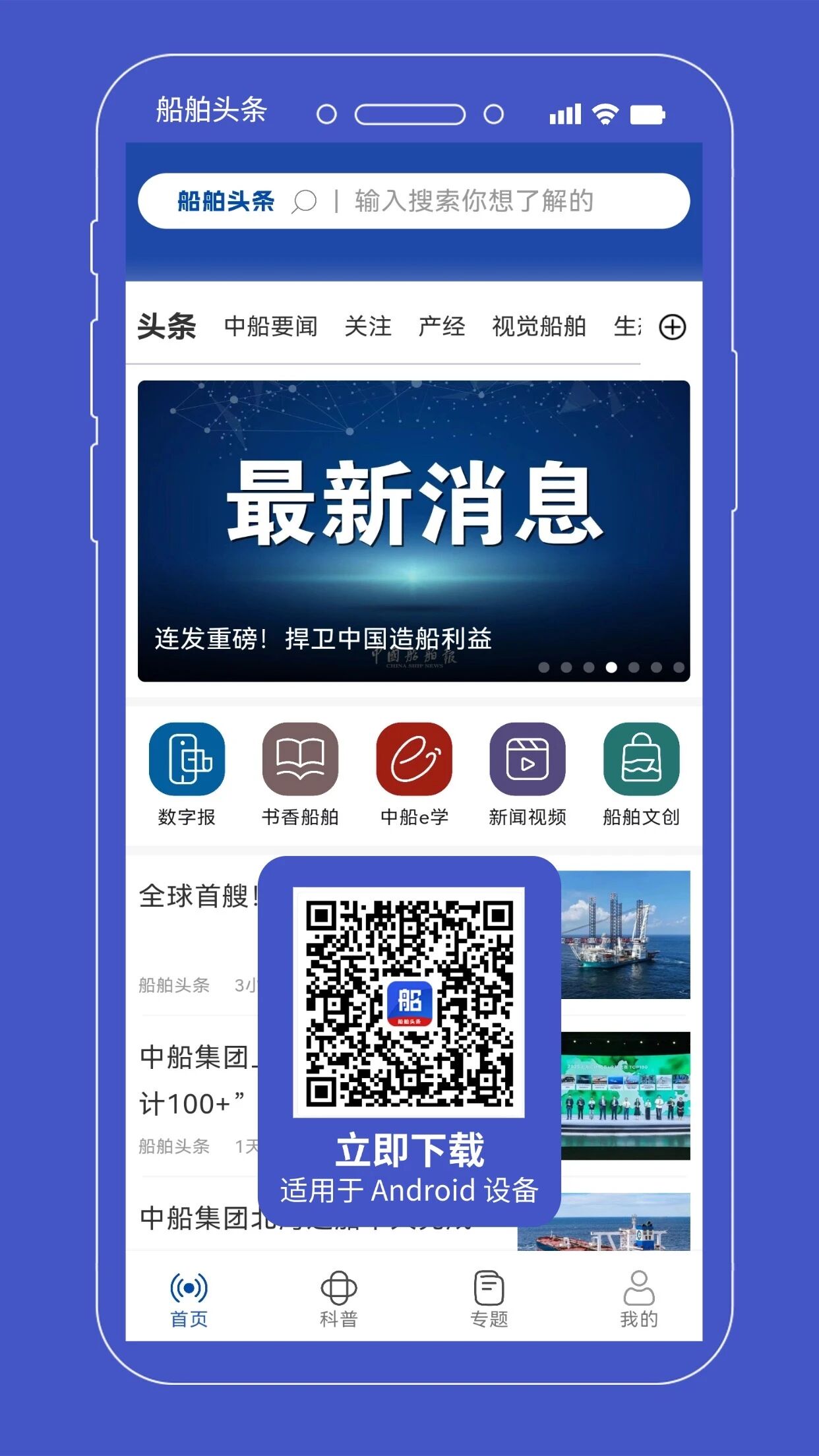 “船舶頭條”App聚焦海洋裝備產(chǎn)業(yè)鏈,集新聞發(fā)布、融合傳播、專業(yè)解讀、科普宣傳、企業(yè)智庫(kù)、服務(wù)聚合等功能為一體,設(shè)有“頭條”“中船要聞”“關(guān)注”“產(chǎn)經(jīng)”“視覺船舶”“生態(tài)圈”6個(gè)精品頻道以及“科普”“專題”等功能版塊,并鏈接“書香船舶”“《中國(guó)船舶報(bào)》數(shù)字報(bào)”“中船e學(xué)”“新聞視頻”“船舶文創(chuàng)”等多個(gè)服務(wù)端口,目前支持安卓系統(tǒng)下載使用。