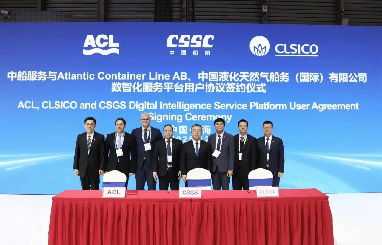 中國液化天然氣船務(wù)(國際)有限公司(CLSICO)與意大利Grimaldi集團(tuán)旗下Atlantic Container Line(ACL)作為中船服務(wù)的長協(xié)服務(wù)簽約客戶,與中船服務(wù)正式簽訂數(shù)智化服務(wù)平臺(tái)用戶協(xié)議,標(biāo)志著CSGS品牌首批標(biāo)桿客戶成功落地。這一合作不僅體現(xiàn)了客戶對(duì)中船集團(tuán)整船服務(wù)能力的信任,也為CSGS全球服務(wù)品牌的推廣樹立了典范。