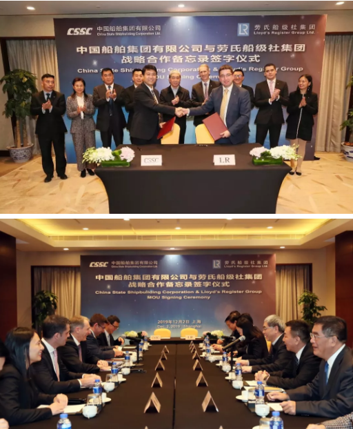 ????12月2日,中國(guó)船舶集團(tuán)有限公司與勞氏船級(jí)社集團(tuán)在上海簽訂戰(zhàn)略合作備忘錄,標(biāo)志著雙方的合作開啟了新的歷史篇章。中國(guó)船舶集團(tuán)董事長(zhǎng)雷凡培,副總經(jīng)理孫偉、姜仁鋒,勞氏船級(jí)社集團(tuán)首席執(zhí)行官Alastair Marsh共同見證雙方簽約。中國(guó)船舶集團(tuán)副總經(jīng)理杜剛、勞氏船級(jí)社集團(tuán)船舶與海工總裁Nick Brown分別代表雙方在備忘錄上簽字。簽約前,雙方圍繞全球船舶海工市場(chǎng)及技術(shù)發(fā)展趨勢(shì)作了交流,就進(jìn)一步加強(qiáng)交流溝通、深化戰(zhàn)略合作進(jìn)行了深入探討并達(dá)成廣泛共識(shí)。