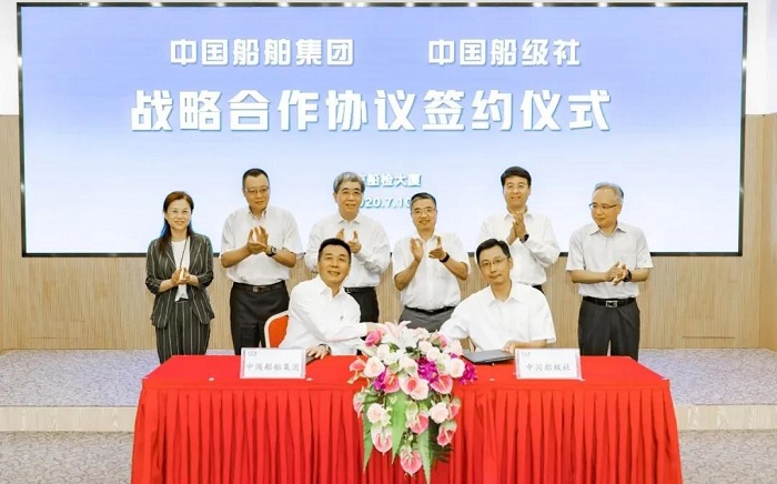7月10日,中國船舶集團(tuán)有限公司與中國船級社在京簽訂戰(zhàn)略合作協(xié)議。中國船舶集團(tuán)黨組書記、董事長雷凡培,黨組成員、副總經(jīng)理杜剛,中國船級社總裁莫鑒輝,副總裁朱愷、范強(qiáng)出席簽約儀式。中國船舶集團(tuán)黨組成員、副總經(jīng)理孫偉,中國船級社副總裁孫峰分別代表雙方在協(xié)議上簽字。簽約后,雙方圍繞共同服務(wù)國家戰(zhàn)略,就進(jìn)一步加強(qiáng)交流合作、促進(jìn)優(yōu)勢互補(bǔ)、實(shí)現(xiàn)共贏發(fā)展進(jìn)行了深入交流。