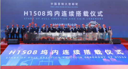 大型郵輪工程是中國船舶集團(tuán)貫徹習(xí)近平總書記重要指示精神、落實國家戰(zhàn)略、滿足人民美好生活需要的重大舉措,也是中國船舶集團(tuán)強化科技創(chuàng)新、促進(jìn)轉(zhuǎn)型升級、推動高質(zhì)量發(fā)展的一號工程。2018年11月6日,中國船舶集團(tuán)與美國嘉年華集團(tuán)、意大利芬坎蒂尼集團(tuán)在首屆中國國際進(jìn)口博覽會上正式簽訂2+4艘13.5萬總噸Vista級大型郵輪建造合同,并舉行了中國船舶集團(tuán)大型郵輪項目工程正式啟動儀式。這是我國首次簽訂真正意義上的大型郵輪建造合同,開啟了中國船舶工業(yè)建造大型郵輪的新時代。2019年10月18日,中國首制大型郵輪在外高橋造船正式開工點火進(jìn)行鋼板切割,全面進(jìn)入實質(zhì)性建造階段。一年多來,在中國船舶集團(tuán)的堅強領(lǐng)導(dǎo)下,在中船郵輪科技發(fā)展有限公司、中船第九設(shè)計研究院工程有限公司、上海船舶工藝研究所等兄弟單位的大力支持下,外高橋造船經(jīng)受住了新冠肺炎疫情的洗禮和考驗,克服了物資采購、薄板車間流水線建設(shè)滯后等一系列困難,一步一個腳印,如期實現(xiàn)了塢內(nèi)連續(xù)搭載總裝的里程碑節(jié)點。