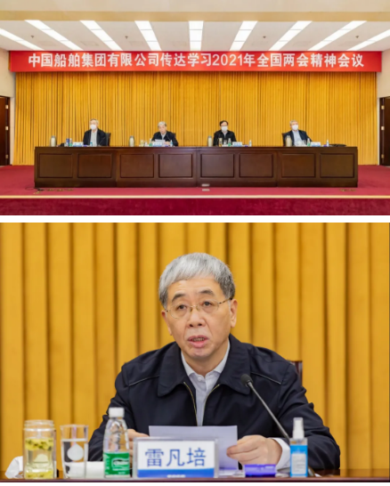 3月12日,中國船舶集團有限公司召開會議,傳達學習習近平總書記全國兩會期間重要講話精神和全國兩會精神,結合集團公司實際,研究部署貫徹落實措施。中國船舶集團黨組書記、董事長雷凡培出席會議并講話,黨組副書記、總經理楊金成主持會議,黨組全體成員出席會議。全國政協(xié)委員董強在會上傳達了全國政協(xié)十三屆四次會議精神,全國人大代表劉征在會上傳達了十三屆全國人大四次會議精神。