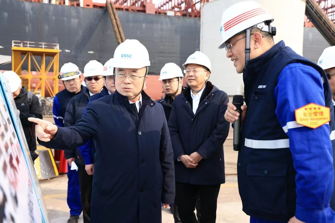 1月22日,中國船舶集團(tuán)有限公司黨組副書記、董事、總經(jīng)理王國強(qiáng)到中船集團(tuán)旗下青島北海造船有限公司調(diào)研工作。