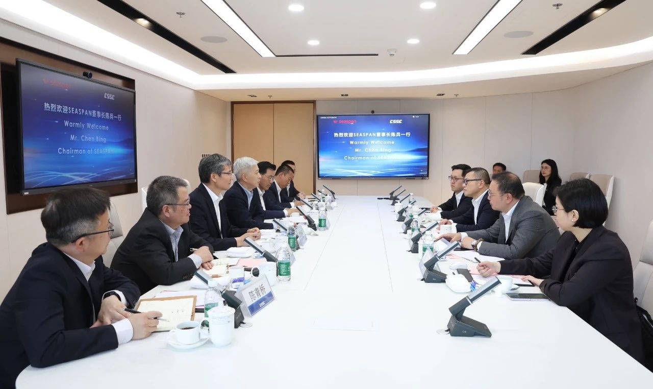 徐鵬對陳兵一行的來訪表示歡迎,并感謝Seaspan公司對中船集團(tuán)的長期信任與支持。徐鵬表示,中船集團(tuán)將持續(xù)提升自身綜合能力,努力為客戶提供更優(yōu)質(zhì)的產(chǎn)品和服務(wù)。Seaspan公司是全球最大的獨(dú)立集裝箱船租賃船東公司,與中船集團(tuán)在長期合作中結(jié)下了深厚友誼。未來,希望雙方建立常態(tài)化溝通交流機(jī)制,在船舶建造與升級改造、國際船海市場拓展、船舶全生命周期運(yùn)維、綠色能源開發(fā)等方面持續(xù)深化進(jìn)一步合作,共同為行業(yè)持續(xù)健康發(fā)展作出應(yīng)有貢獻(xiàn)。