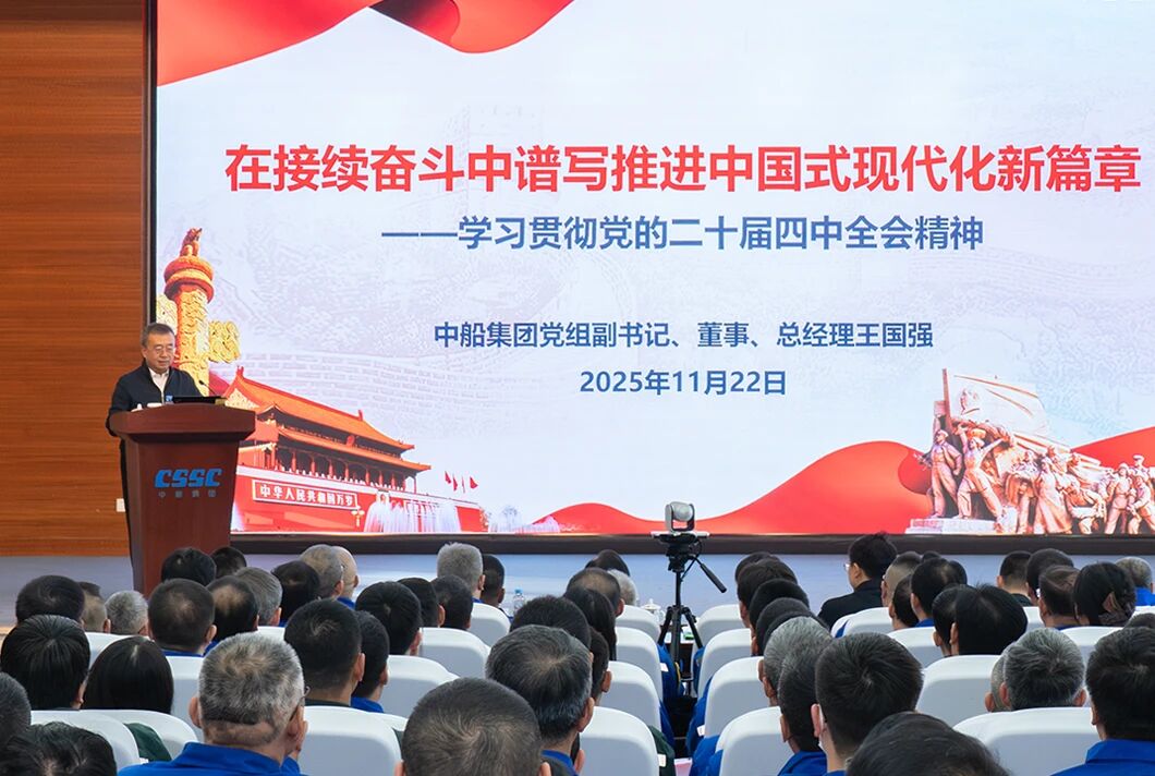 黨組成員在宣講會上強調(diào),學(xué)習(xí)好貫徹好黨的二十屆四中全會精神是當(dāng)前和今后一個時期的重大政治任務(wù)。要更加緊密地團結(jié)在以習(xí)近平同志為核心的黨中央周圍,全面貫徹習(xí)近平新時代中國特色社會主義思想,把思想和行動統(tǒng)一到黨中央對形勢的科學(xué)判斷和決策部署上來,狠抓各項工作落實。要堅持創(chuàng)新驅(qū)動,抓住新一輪科技革命和產(chǎn)業(yè)變革歷史機遇,加快推進高水平科技自立自強;要加快提質(zhì)升級,堅持智能化、綠色化、融合化方向,爭當(dāng)建設(shè)現(xiàn)代化產(chǎn)業(yè)體系的排頭兵;要全面深化改革,進一步解決制約高質(zhì)量發(fā)展的卡點堵點問題,持續(xù)增強發(fā)展動力和活力;要強化根魂優(yōu)勢,堅持和加強黨的領(lǐng)導(dǎo)、黨的建設(shè),以高質(zhì)量黨建引領(lǐng)保障高質(zhì)量發(fā)展,確保2025年和“十四五”規(guī)劃目標(biāo)任務(wù)完成、“十五五”良好開局,為以中國式現(xiàn)代化全面推進強國建設(shè)、民族復(fù)興偉業(yè)貢獻中船力量。