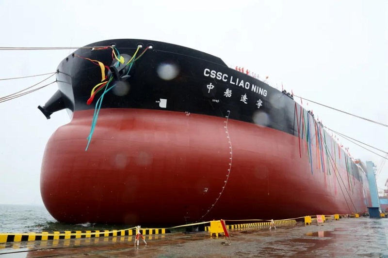 ????今天,中國船舶集團旗下大船集團為中船貿(mào)易所屬租賃公司建造的30.8萬噸超大型原油船“中船遼寧”號命名交付。“中船遼寧”號是大船集團自主開發(fā)的新一代極具市場競爭力的品牌船型。該船總長332.95米,型寬60米,最大載重量30.8萬噸,屬于無限航區(qū)船型,續(xù)航里程超過25000海里,在設(shè)計吃水20.5米可正常裝載200萬桶原油通過馬六甲海峽。