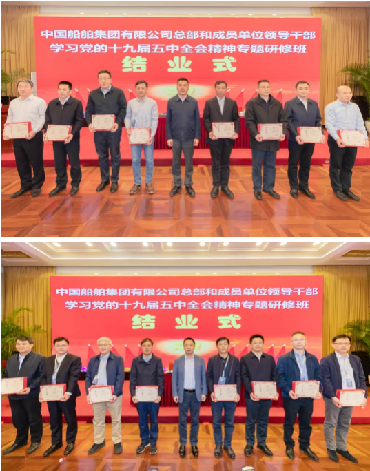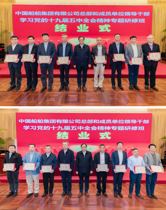 4月23日,中國船舶集團有限公司總部和成員單位領導干部學習黨的十九屆五中全會精神和黨史學習教育專題研修班圓滿結業(yè)。培訓期間,中國船舶集團黨組書記、董事長雷凡培以《深入貫徹落實習近平總書記重要指示批示精神 努力加快建設世界一流船舶集團》為題給全體學員們講授了第一課,中國船舶集團黨組副書記、總經理楊金成,黨組成員、副總經理孫偉、盛紀綱以及相關部門負責人先后出席各期結業(yè)式并聽取了學員們的學習匯報。