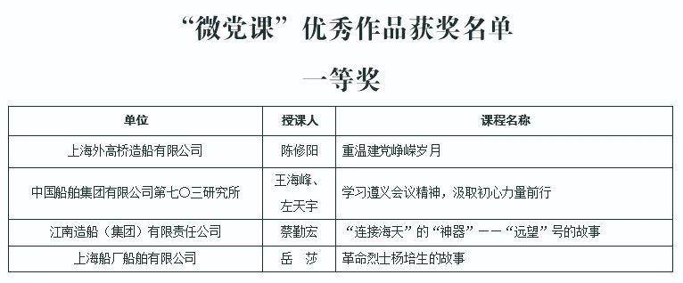 除一等獎的“微黨課”作品,其他獲評優(yōu)秀的“微黨課”和專題黨課可以登錄集團公司黨校“中船e學(xué)”平臺首頁“中國船舶集團有限公司黨課評選優(yōu)秀作品展示”進行觀看。