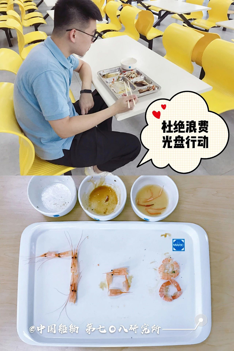 “誰知盤中餐,粒粒皆辛苦。” 自古以來 敬天惜糧、勤儉節(jié)約就是 中華民族傳統(tǒng)美德 中國船舶集團(tuán)多家成員單位 用實際行動 杜絕“舌尖上的浪費”